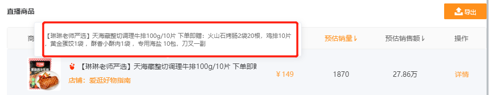 再加上我們發(fā)現(xiàn),這款商品的贈品很多,下單即贈烤腸2袋、雞排10片、黃金蛋餃1袋、小酥肉1袋、專用海鹽10包、刀叉1副??雌饋砩唐繁容^優(yōu)惠。