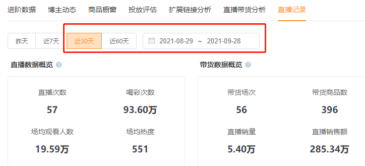 我們選取了琳琳老師形體氣質(zhì)近30天的直播數(shù)據(jù),場均觀看近20萬,而直播銷量有5.4萬,比千祎形體禮儀高出不少,銷售額高達(dá)285萬。