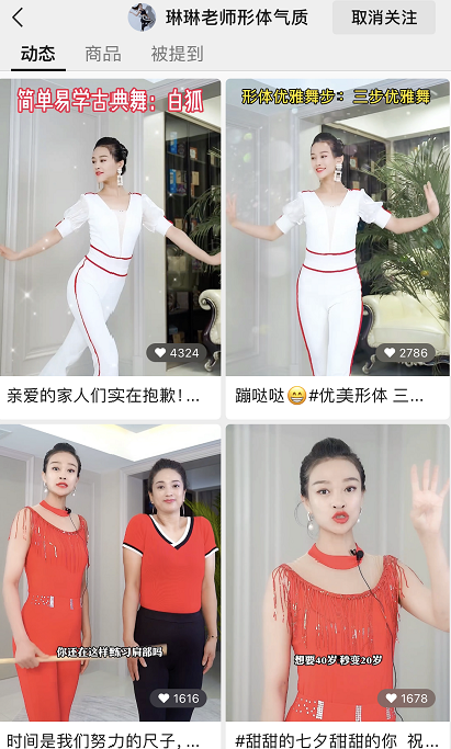 點開詳情看到,這些商品的帶貨博主是琳琳老師形體氣質(zhì)、千祎形體禮儀、艾瑪形體儀態(tài)美學(xué)等教形體儀態(tài)的賬號。