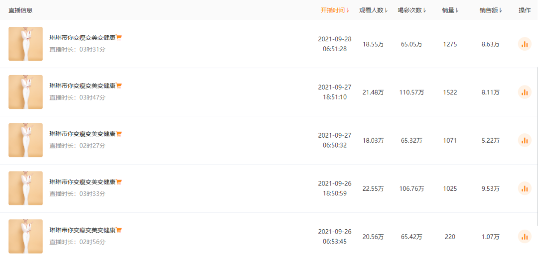 而琳琳老師形體氣質(zhì)則幾乎每場直播都有在帶貨,從直播記錄中可以看到,她的觀看人數(shù)基本都在20萬左右。