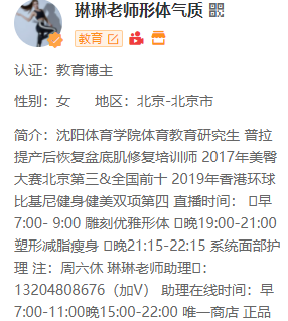 這些形體直播通常都是高頻且規(guī)律,她們都在在各自的視頻號簡介中說明直播的時間和內(nèi)容。