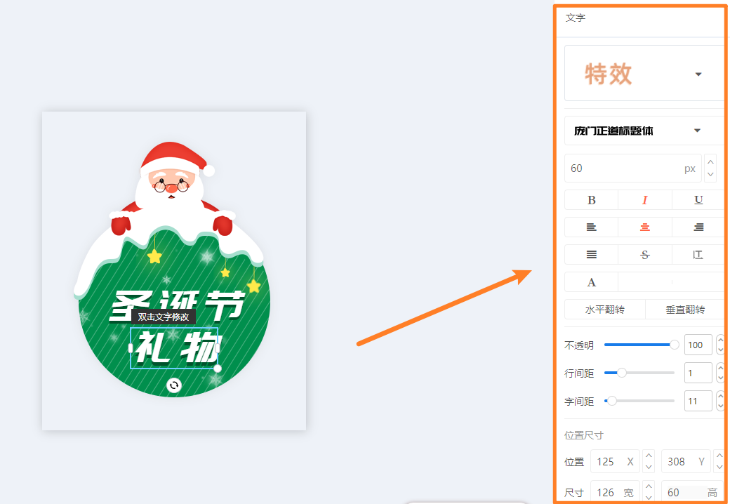 右側(cè)的功能區(qū)還可以對文字的字體、大小、顏色等參數(shù)進(jìn)行調(diào)整;