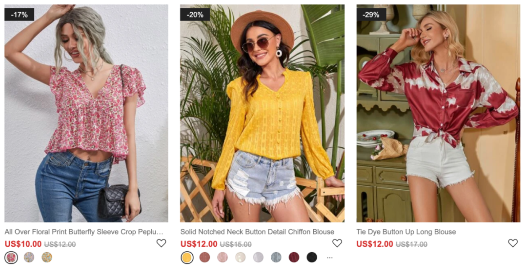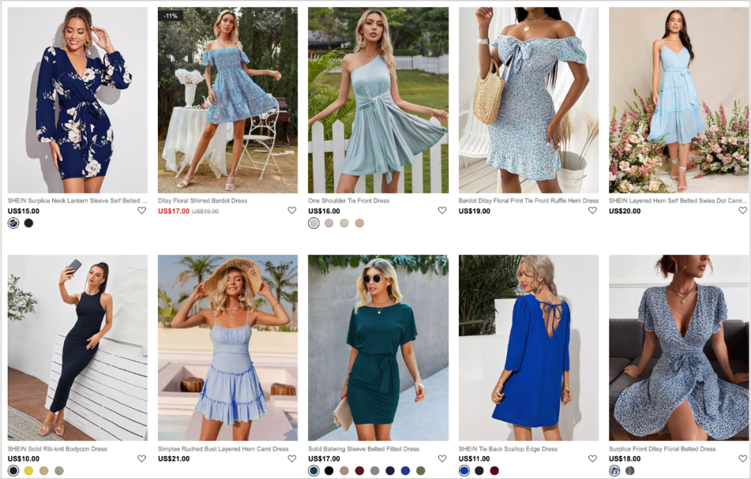 大眾對(duì)快時(shí)尚比如 ZARA、H&M 等品牌的理解就是便宜、上新快、款式多,但是 SHEIN 的出現(xiàn), 把這三個(gè)維度推向了史無前例的高度。SHEIN 的衣服有多便宜?打開 SHEIN 的官網(wǎng)你會(huì)發(fā)現(xiàn),一件衣服原價(jià)大概只要 10 刀,裙子只要 20 刀。在此基礎(chǔ)上,SHEIN 還會(huì)再給你打個(gè) 8-9 折。
