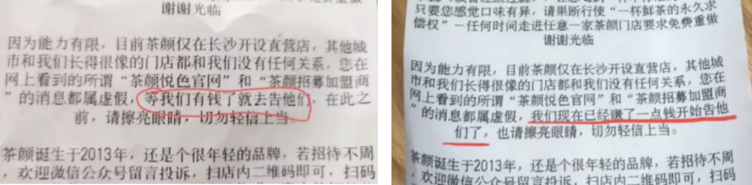 前天,茶顏悅色因?yàn)榕抨?duì)太久而上了熱搜:事情的起因是,茶顏在武漢開(kāi)了一家新店,開(kāi)業(yè)第一天,排出了史詩(shī)級(jí)別的長(zhǎng)隊(duì):長(zhǎng) 1 千多米,要排 8 個(gè)小時(shí)才能喝到一杯。不僅如此,現(xiàn)場(chǎng)還催生了代排隊(duì)的黃牛,一杯價(jià)格最高被炒到了夸張的 500 多元!上熱搜不久,就有人放出截圖,言之鑿鑿地表示,這些排隊(duì)的人都是托兒,是茶顏官方花錢(qián)請(qǐng)來(lái)的……茶顏也是硬氣,在微博火速回應(yīng),表示已經(jīng)報(bào)警處理: 這一來(lái)一回,不費(fèi)吹灰之力就賺足了熱度。不得不說(shuō),這個(gè)源自長(zhǎng)沙的茶飲品牌,真的太不一樣了:它不是一個(gè)完美的品牌,卻有一大波死忠粉,對(duì)外安利奶茶的架勢(shì)堪比給愛(ài)豆應(yīng)援;幾乎從來(lái)不做推廣營(yíng)銷(xiāo),甚至不輕易走出長(zhǎng)沙,卻“意外”火遍全國(guó);它的團(tuán)隊(duì)走老干部風(fēng)格,和現(xiàn)在強(qiáng)調(diào)年輕、專(zhuān)業(yè)、科技感的喜茶等網(wǎng)紅品牌完全不同……對(duì)于茶顏悅色門(mén)店的特點(diǎn),相信不少人已經(jīng)略有耳聞:只在長(zhǎng)沙開(kāi)店,別的地方都沒(méi)有(現(xiàn)在多了武漢); 作為正版,居然直接在小票上告訴用戶(hù),“現(xiàn)在沒(méi)錢(qián),等有錢(qián)了就去告他們”; 對(duì)口味不滿(mǎn)意,可以在任何門(mén)店免費(fèi)重做……