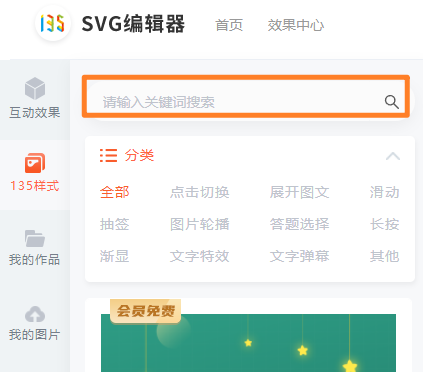 除了使用以上這些135編輯器中搭配好的圣誕節(jié)SVG樣式,你還可以利用SVG編輯器里的SVG效果組件來打造你的專屬動(dòng)態(tài)圖文!