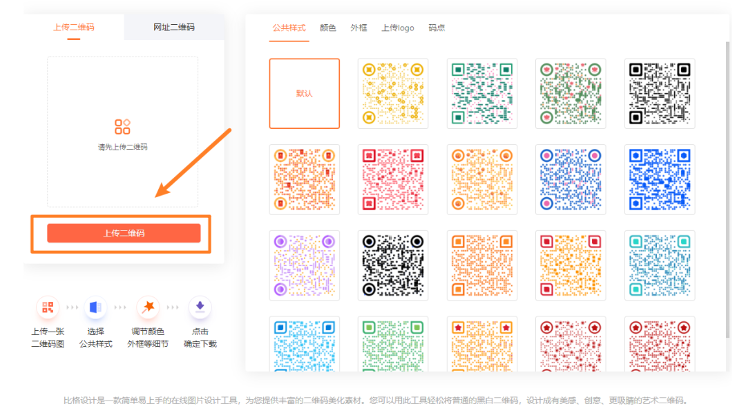 點擊【上傳二維碼】按鈕,選擇并上傳需要美化的二維碼圖片。