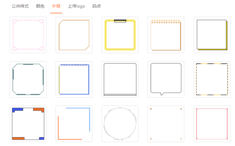 選擇【外框】選項,可以為你的二維碼搭配一個好看的邊框,如果不需要外框,選擇【默認(rèn)】邊框即可。