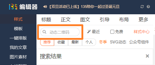 制作好的二維碼還可以套用135編輯器的二維碼樣式,如果想要做出動態(tài)二維碼的效果,在135編輯器中搜索【動態(tài)二維碼】就可以找到相應(yīng)的樣式進(jìn)行套用了。
