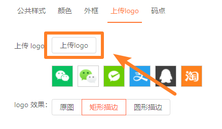在二維碼編輯頁右側(cè)的功能區(qū)中,點擊【上傳logo】,上傳自己的品牌logo或選擇系統(tǒng)提供的logo就能實現(xiàn)這種效果。