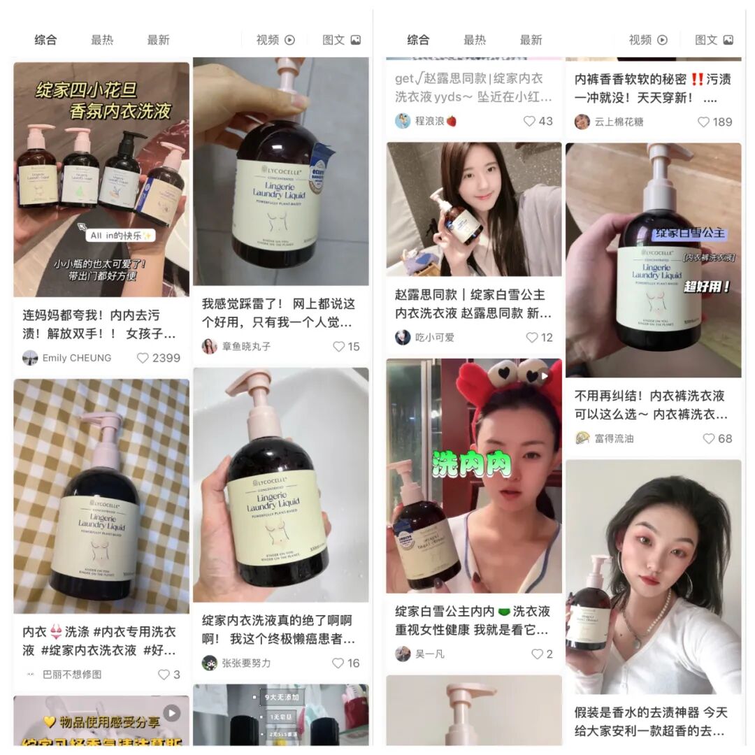 除了提前搶占同類目下的搜索流量,綻家還布局了跨類目相關(guān)的筆記內(nèi)容進(jìn)行投放。綻家的產(chǎn)品是內(nèi)衣洗液,用戶除了是直接搜索家清相關(guān)產(chǎn)品的人,也是購買內(nèi)衣、內(nèi)褲等服飾的人群。比如這一兩年一些內(nèi)衣新品牌很火,它們?cè)谛〖t書上有大量的受眾,那么綻家就會(huì)鎖定這部分流量,包括其他相關(guān)產(chǎn)品。