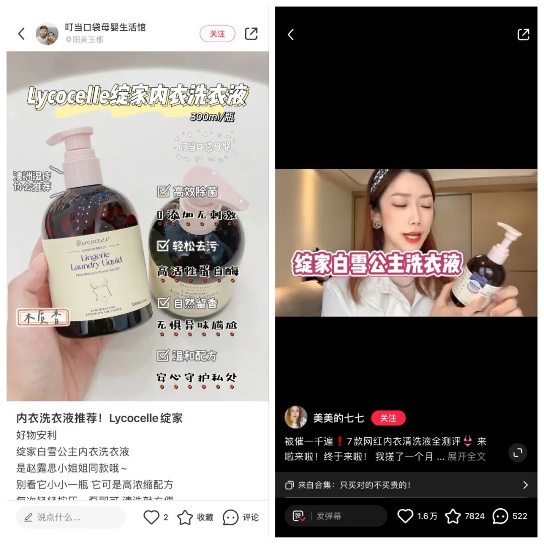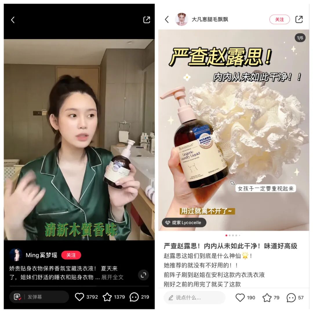 另外綻家在內(nèi)容打造上也有自己的獨(dú)門心法,比如品牌造詞。綻家的爆款產(chǎn)品內(nèi)衣洗衣液在小紅書做投放的時(shí)候,她們就打造了“趙露思白雪公主”“白雪公主洗衣液”等關(guān)鍵詞。