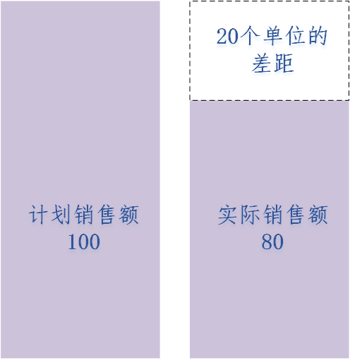 再比如說,今年計劃在某一個地區(qū)、某個產(chǎn)品上完成 100 個單位的銷售額。但是因?yàn)闆]有做好,無論是銷售執(zhí)行沒有做好,還是資源匹配沒有做好,最后只完成了 80 個,因此產(chǎn)生了 20 個的差距。