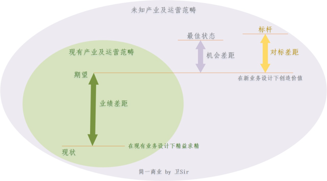 業(yè)績差距和機(jī)會差距,分別對應(yīng)公司的經(jīng)營層面和戰(zhàn)略層面: