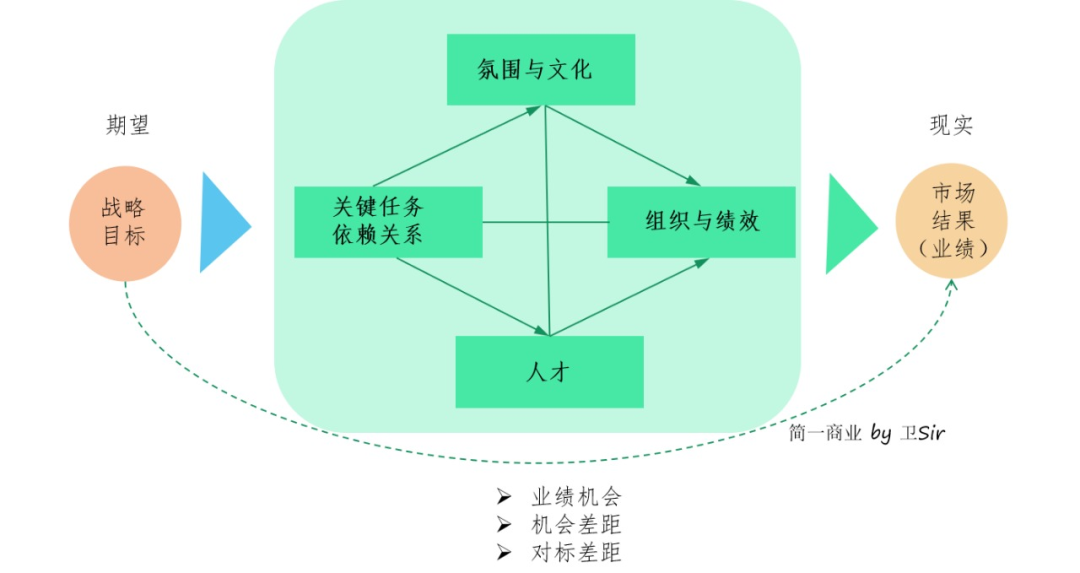 業(yè)績差距是 BLM 模型中執(zhí)行的重要輸入,機(jī)會差距是 BLM 模型中戰(zhàn)略的重要輸入。原因在于,業(yè)績差距是執(zhí)行不到位導(dǎo)致的,是向內(nèi)看,是現(xiàn)有賽道的提升,而機(jī)會差距,是需要通過新的業(yè)務(wù)設(shè)計,才能改變。