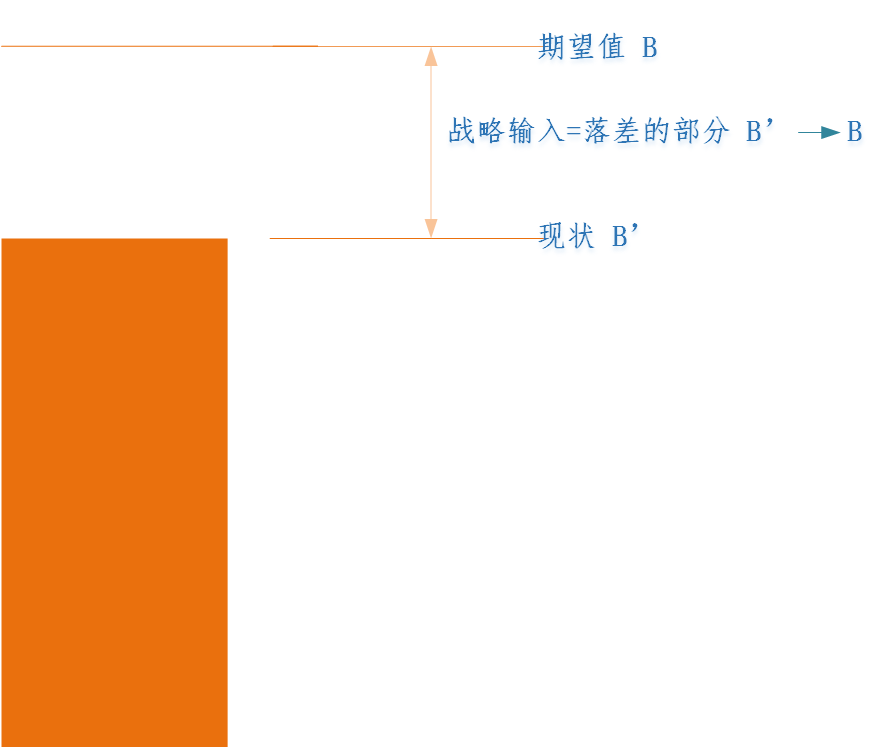 假設(shè)某件事的期望值是(B),現(xiàn)狀是(B’),那么(B’→B)這個落差部分就是問題,也就是戰(zhàn)略輸入。