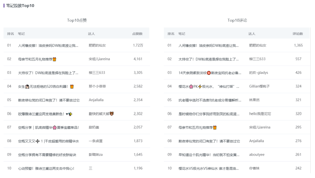 以下為雅詩蘭黛5月份TOP10投放內容案例: