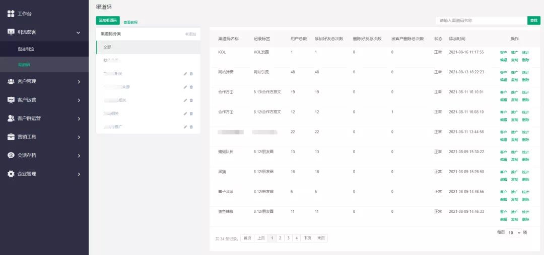 管小助scrm開發(fā)了眾多的企業(yè)微信輔助功能,可以做裂變引流活動,還有渠道活碼、智能標簽、企業(yè)微信會話存檔、客戶管理、客戶群管理、精準營銷、企業(yè)風控等功能。
