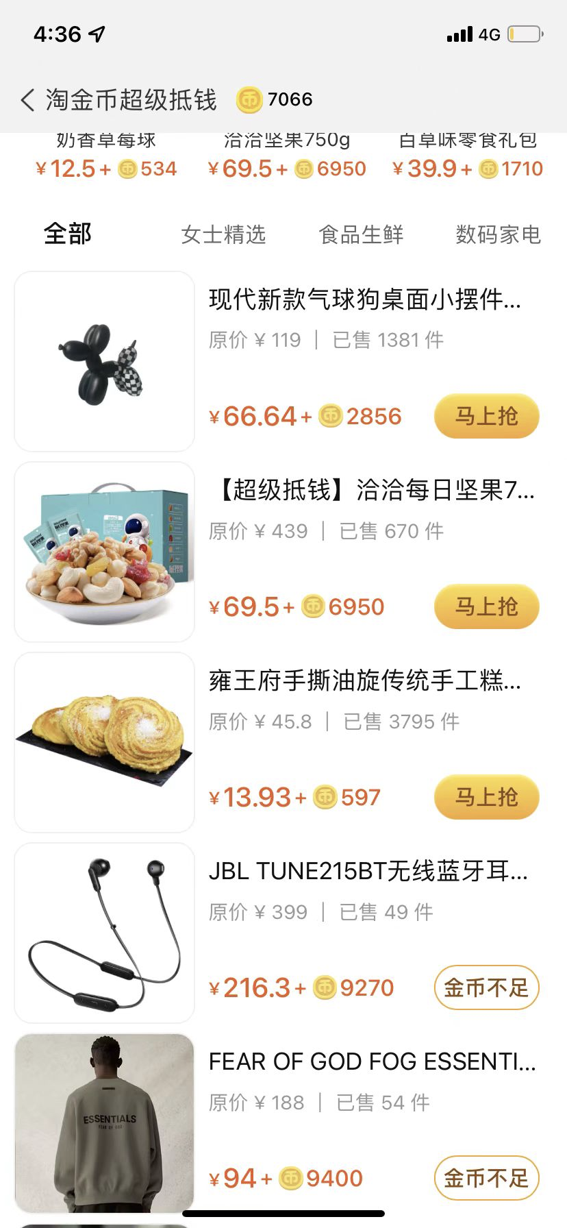 這種方式是以「積分+少量現(xiàn)金」的形式進(jìn)行兌換,既可以方便商家靈活地控制積分兌換成本,促進(jìn)庫(kù)存消化,對(duì)于加快積分消耗的幫助也不小。例如淘寶的淘金幣就有專門換購(gòu)的區(qū)域。