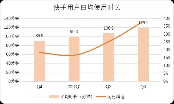 同時(shí)據(jù)快手 Q3 財(cái)報(bào)數(shù)據(jù)顯示,快手用戶日均使用時(shí)長(zhǎng)達(dá)到 119.1 分鐘。