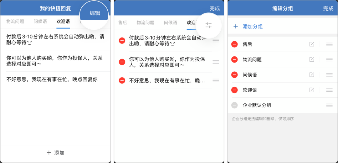 在和客戶私聊的過程中,運營人員可以總結(jié)一些客戶常見問題的答案,統(tǒng)一放到快捷回復(fù)中,按照不同類型的問題進行編輯分組,比如問候語、歡迎語、物流問題、產(chǎn)品介紹、售后服務(wù)等,大大提升溝通效率。除了通過快捷回復(fù)提升私聊的服務(wù)效率之外,企業(yè)微信還有個強大的功能有著異曲同工之妙——聊天工具欄。運營人員可以對聊天工具欄已有的工具進行調(diào)整,調(diào)整順序或刪除,將常用的工具比如客戶詳情、快捷回復(fù)、商品圖冊等功能放在前面,當(dāng)和客戶溝通的時候,方便直接調(diào)用。在私聊的時候,我們還是要按照「內(nèi)容節(jié)奏」來,可以使用企業(yè)微信的「標(biāo)簽群發(fā)」,對不同時期加進來的客戶做個性化觸達,保證效果最大化。除此之外,還可以嘗試和客戶進行互動來做客戶篩選與個性化觸達,可以通過讓客戶回復(fù)數(shù)字、做選擇題等方式,讓客戶對你發(fā)布的內(nèi)容有所回應(yīng),然后再根據(jù)客戶的回應(yīng),給到更加精細化的解決方案。