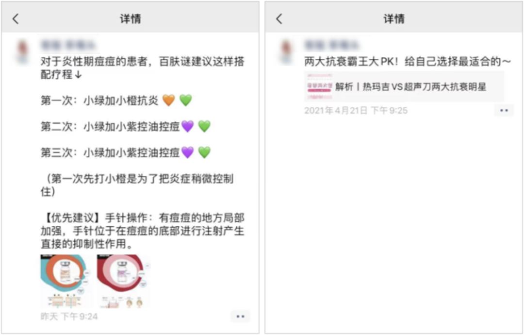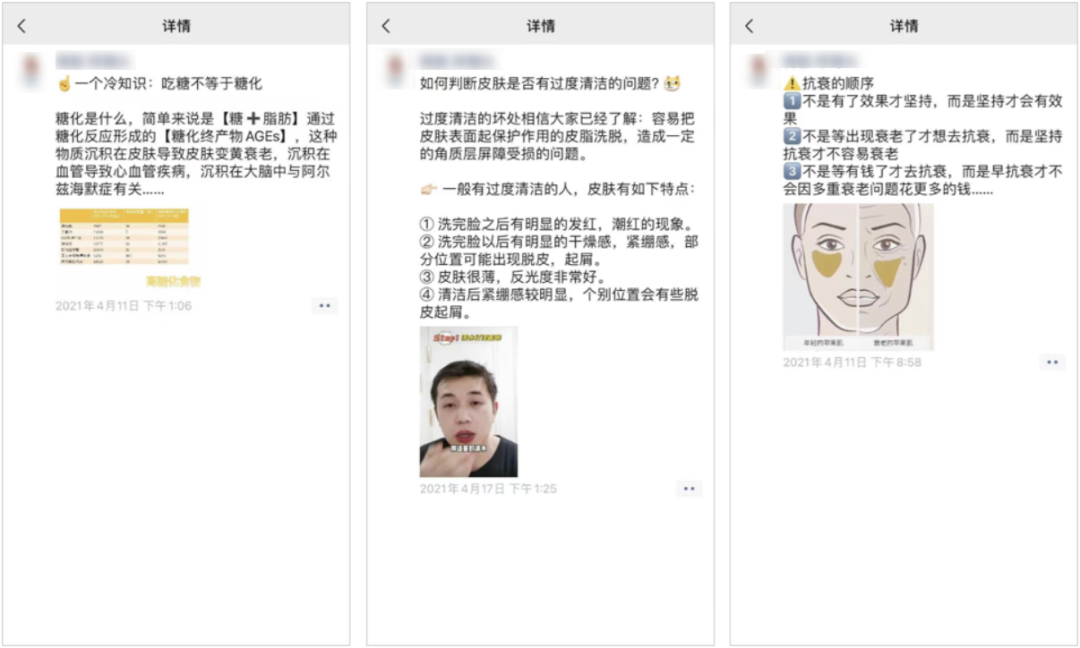 再比如,醫(yī)美公司想要賣出美容項目,就需要讓大家認識到“正確保養(yǎng)的重要性”。因此,它就需要經(jīng)常發(fā)一些“美容冷知識”,“錯誤的護膚/抗衰知識”等,來告訴用戶“這樣做,你就是在變丑”,引起用戶重視,喚醒用戶對醫(yī)美產(chǎn)品的需求: