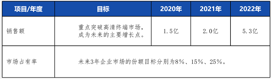 - 到 2022 年,在戰(zhàn)略重點市場的產品的競爭力達到國內領先水平,行業(yè)內的銷售額做到第一,成為國內企業(yè)第一品牌。