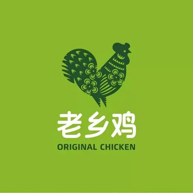 我們看老鄉(xiāng)雞的設(shè)計(jì),首先也有超級(jí)符號(hào)的元素——剪紙形式的標(biāo)志,給人感覺(jué)是源自本土的品牌。其次顏色。綠色是天然的,更重要的是能夠和其他品牌產(chǎn)生差異化。這就是有競(jìng)爭(zhēng)思維的做法。
