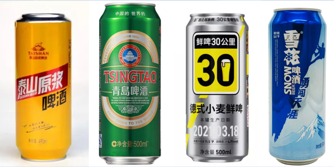 鮮啤30公里這個(gè)品牌的設(shè)計(jì)就很有競(jìng)爭(zhēng)思維。為什么這么說(shuō)?因?yàn)楹蛣e的品牌放在一起,有明顯的差異化。