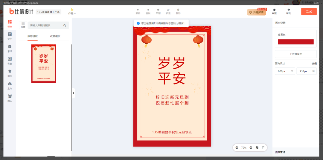 5.頁面跳轉(zhuǎn)到比格設(shè)計(jì),就可以直接修改文字或者其它元素了。