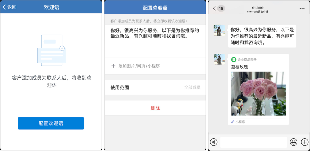 在之前的文章中,運營研究社提到首次和用戶的溝通決定 80% 的留存,及時的添加回應(yīng),熱情的自我介紹,加上告訴用戶能為他做什么,講出長期價值,可以用戶添加的留存率。企業(yè)微信的歡迎語功能,可以實現(xiàn)客戶添加自動發(fā)送,不會冷落到客戶,歡迎語的設(shè)置也可以實現(xiàn)添加即激活。企業(yè)微信的歡迎語支持多種內(nèi)容形式,可使用文字、圖片、網(wǎng)頁、小程序消息來配置歡迎語。2)朋友圈廣告