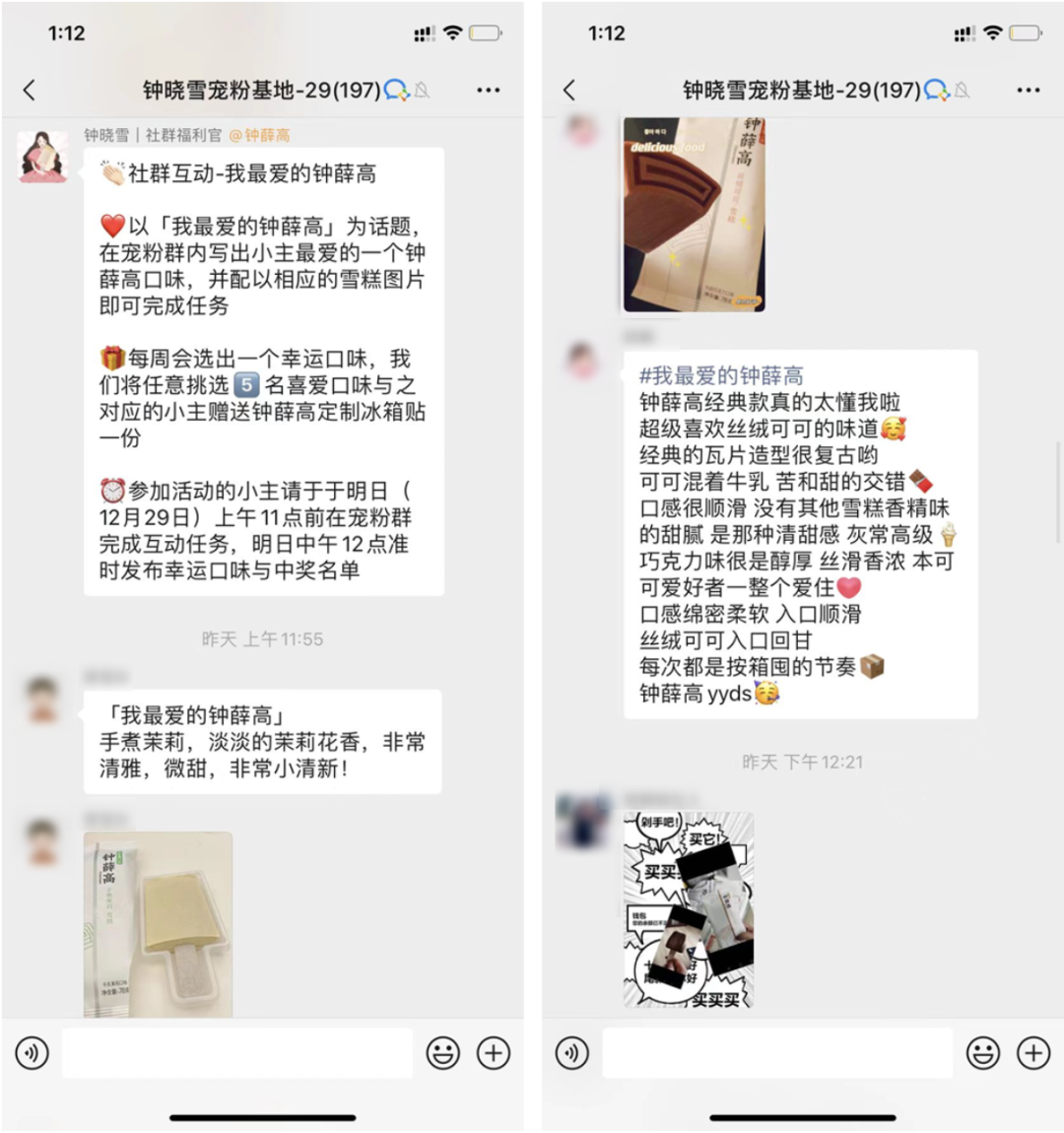 更巧妙的是,鐘薛高福利官(群主)還會在社群內(nèi)發(fā)起互動話題,讓用戶以#我愛鐘薛高 為話題寫出最愛的鐘薛高品味并配上圖,完成任務(wù)的小伙伴可以獲得周邊。大家沖著周邊紛紛在群里發(fā)自己最喜歡的口味和圖片,在無形中帶動其他用戶一起發(fā)布,同時也在潛移默化中影響并種草圍觀用戶。