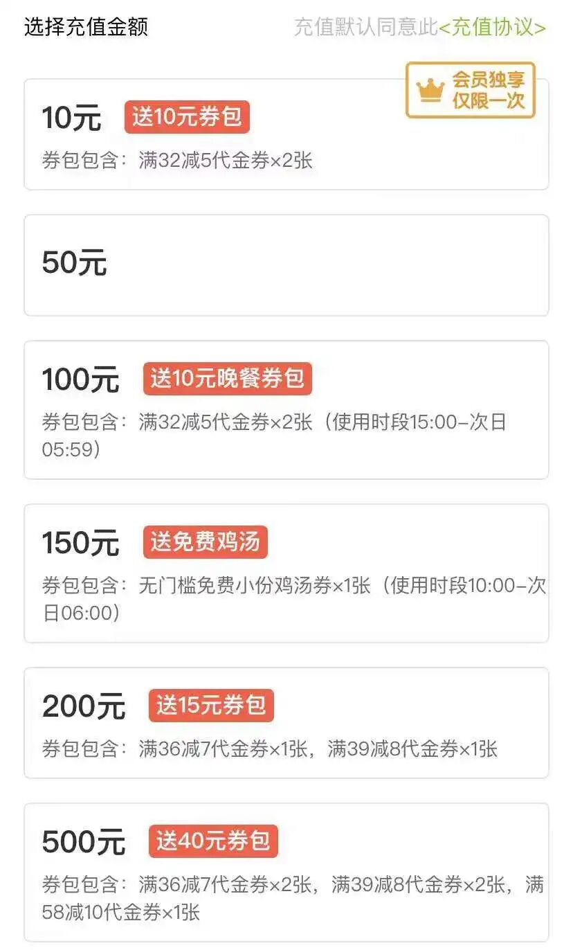 轉(zhuǎn)化率和復購率就是一家餐飲店的“生命線”。目前市面上很多品牌會通過充值活動這樣提前鎖定消費的方式來做轉(zhuǎn)化和復購。知情人士表示,老鄉(xiāng)雞也有在做一些充值活動,譬如“充xxx元返還xx元代金券”,但效果其實不是很突出。這樣幾百的充值其實對于消費者而言決策門檻有些高。消費者過來吃一頓飯也就是花 20 - 30 塊錢,不太可能為了幾十元的飯一下子去充幾百元。