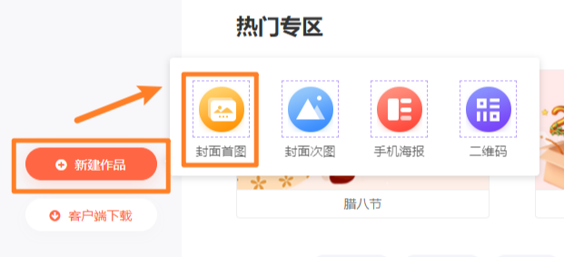 ● 點(diǎn)擊左下角的『新建作品』-『封面首圖』選項,新建一個封面首圖畫布(900px寬:300px高)。