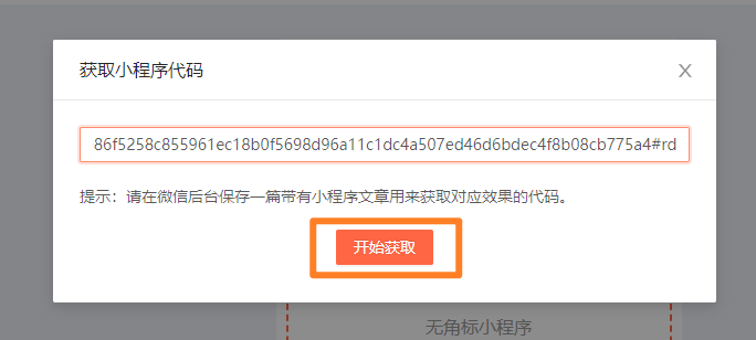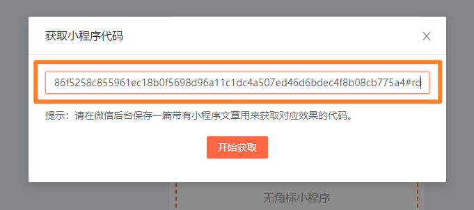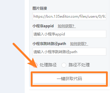 點擊小程序素材右側(cè)的【一鍵獲取代碼】按鈕,將預覽文章鏈接粘貼到輸入欄中;