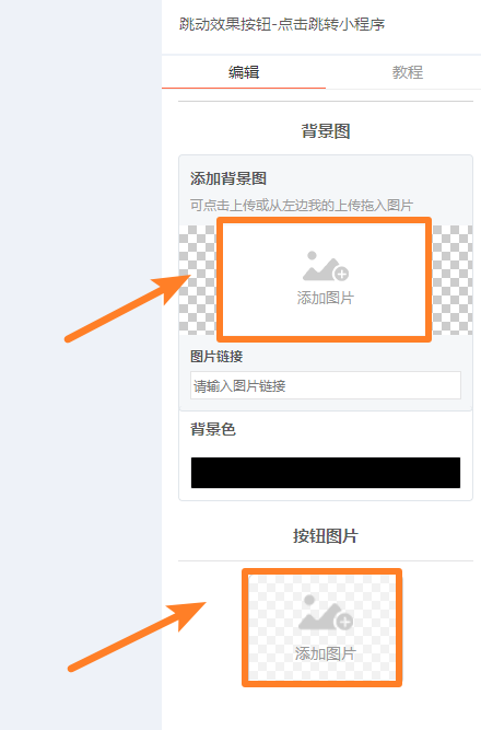 在編輯器右側(cè)分別上傳背景圖和按鈕圖片;