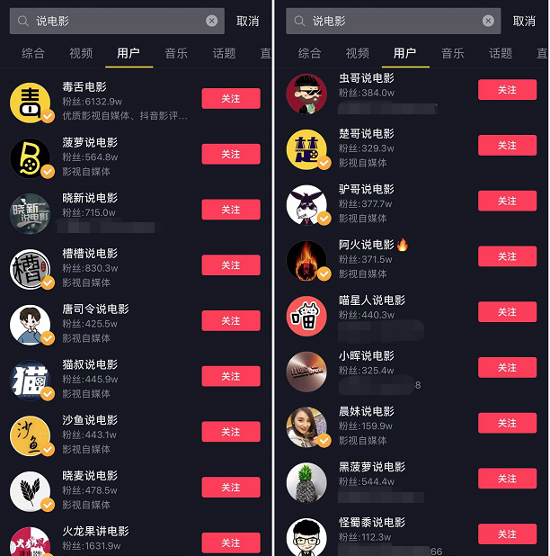 在B站里,這一類(lèi)視頻普遍較長(zhǎng),15分鐘以上是常有的事情,有的超長(zhǎng)解說(shuō)甚至長(zhǎng)達(dá)一兩個(gè)小時(shí)。在抖音里,影視號(hào)抓住豎屏短視頻追求爽感、獵奇的特性,大量解說(shuō)驚悚恐怖片,在極短的時(shí)間內(nèi)崛起為千萬(wàn)大號(hào)。目前抖音上粉絲數(shù)量超過(guò)百萬(wàn),且更新較為活躍的影視劇剪輯博主遠(yuǎn)超100名。