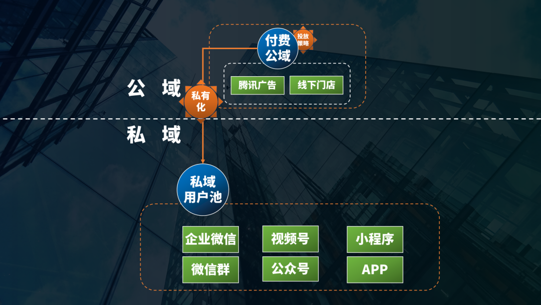 其次,我們的投放不僅追求商業(yè)化(以最終成交,鏡子安裝為最終目的),同時也在追求把付費公域(廣告投放、線下門店)流量私有化到我們私域用戶池(企業(yè)微信、公眾號、視頻號、微信群、APP)里。