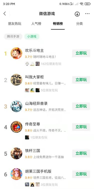 如果投放的游戲量級比較大,也可以通過微信上的小游戲-“暢銷榜”來看到自己產(chǎn)品的實時排名,僅使用于內(nèi)購小游戲。