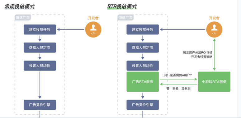 官方的話來說則是,RTA投放是基于過去在用戶理解能力上在廣告場景投放上的嘗試。通過這套機制,大家就可以更精細地告訴廣告系統(tǒng) ,我的目標用戶是誰,做到投放更高效,roi更高。