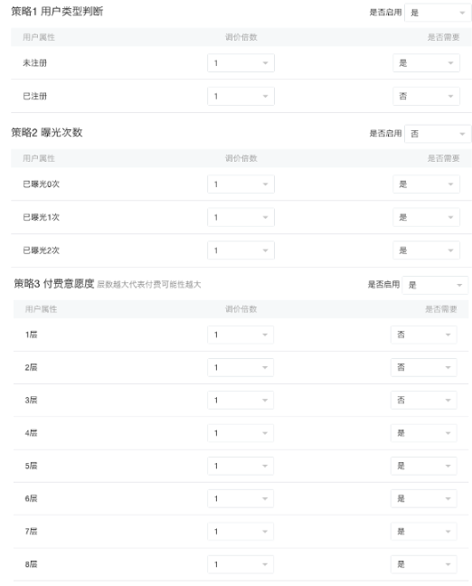 或者②測試未注冊用戶&付費意愿用戶篩選+調(diào)價策略具體配置: