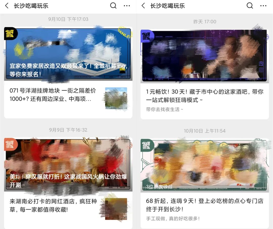 我們選取了「長沙吃喝玩樂」進行分析,大多數(shù)文章可以歸納為「分享長沙哪里又有好吃的美食,好玩的活動」