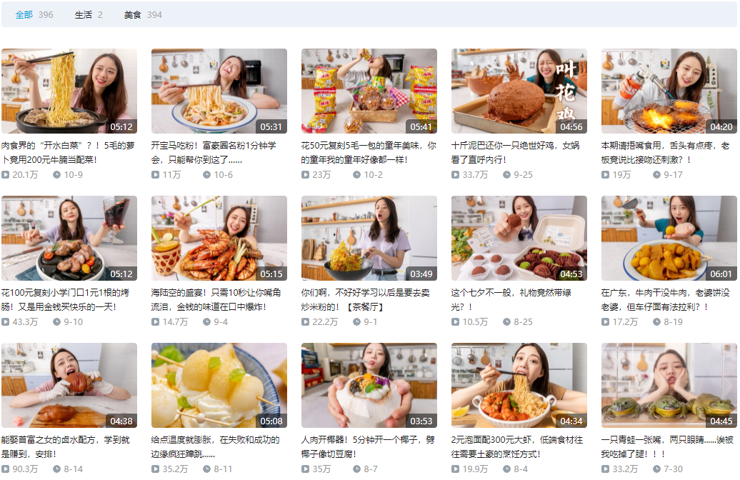 例如,汽車類賬號的素材來源于品牌汽車官網(wǎng),娛樂類賬號的素材來源于影視劇。美食類賬號,也是其中的典型。目前美食類公眾號主要有四種類型,有分享vlog美食視頻,有攻略教學類,有吃播類,還有美食探店類賬號。