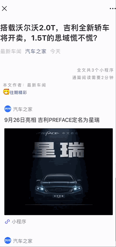 每次推送的8條都是最新車聞,會直接跳轉(zhuǎn)到汽車之家小程序中的相應(yīng)文章。