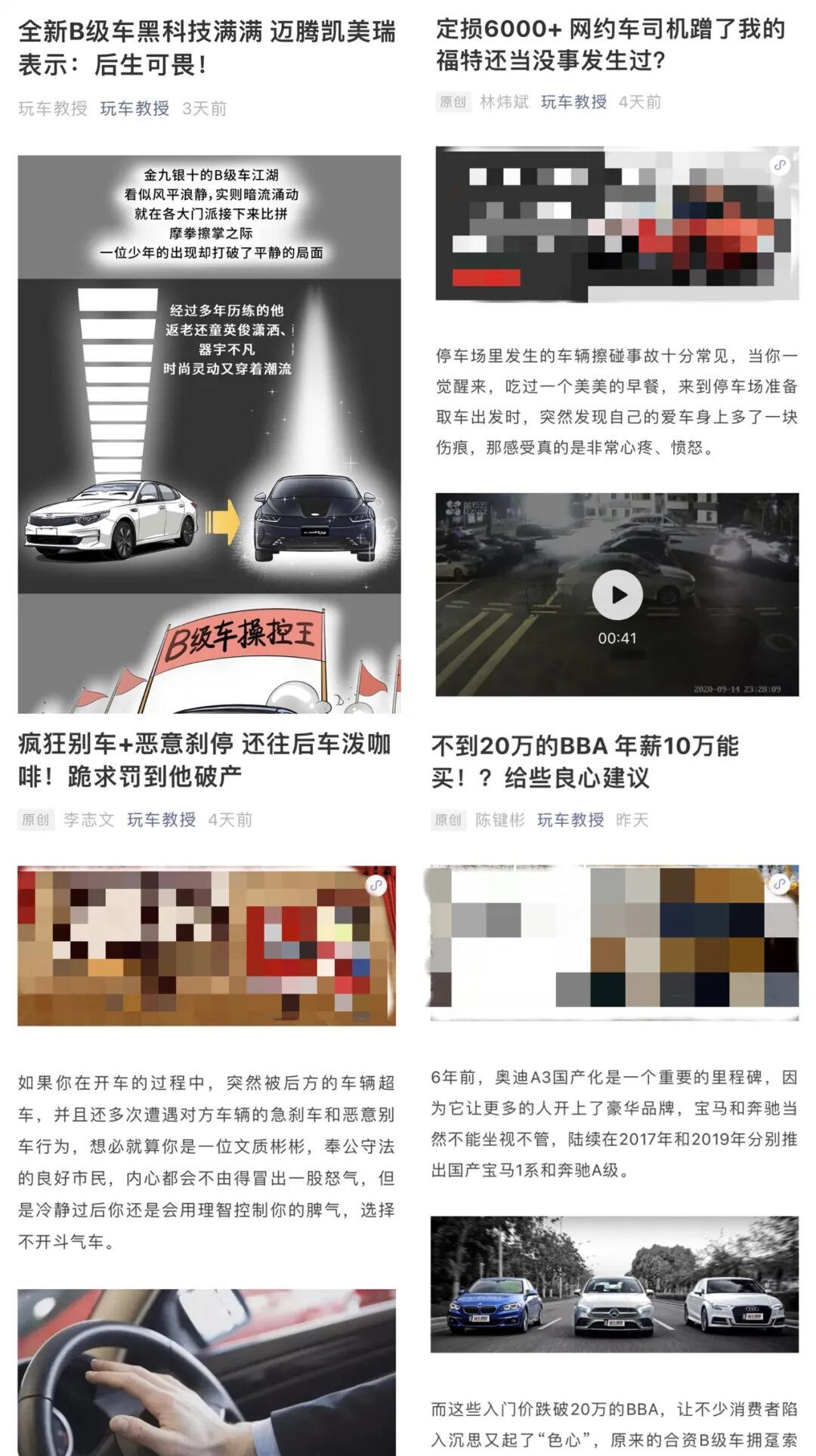 「玩車教授」的文章選題比較豐富,不僅僅是有關(guān)于車的測評,還有被蹭車的整個事件還有近期關(guān)于車的熱門話題都會發(fā)布相關(guān)文章。