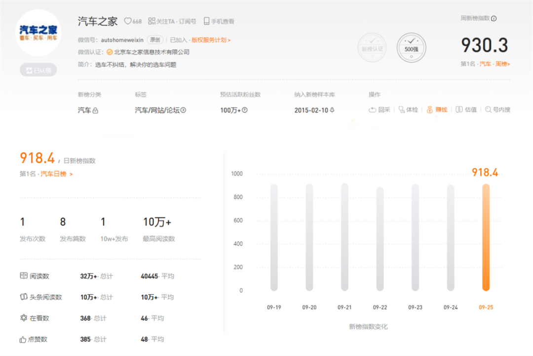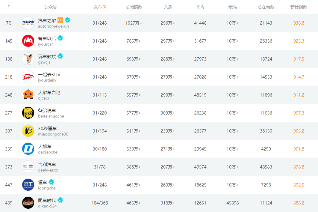 汽車類公眾號雖然看著上榜還挺多,但是除去平臺和品牌,自媒體也不剩幾個了。