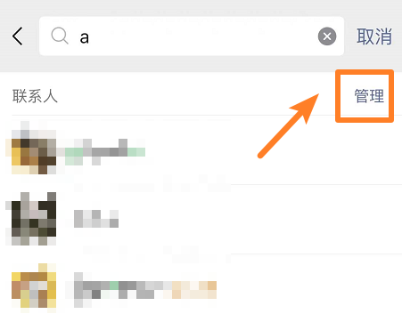 在搜索結(jié)果下點擊“更多聯(lián)系人”,右上角新增了“管理”按鈕;