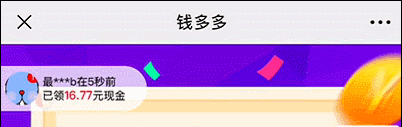 在開紅包之前+開紅包之后,在左上角用跑馬燈形式展示「XX獲得了XX元現(xiàn)金紅包」,從而增加可信度(一般跑馬燈的樣式,類似由右往左滑動(dòng)的彈幕效果會(huì)更引起注意)。