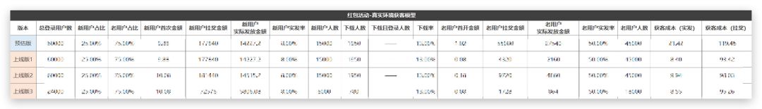 上面說的,上線前的獲客成本模型預(yù)估,終究只是預(yù)估,檢驗(yàn)真理的唯一標(biāo)準(zhǔn)還是要通過實(shí)踐。所以活動(dòng)上線后,要通過內(nèi)測(cè)期間跑出的數(shù)據(jù)與上線前預(yù)估的獲客模型進(jìn)行比較和修正,得出真實(shí)環(huán)境的獲客成本模型。