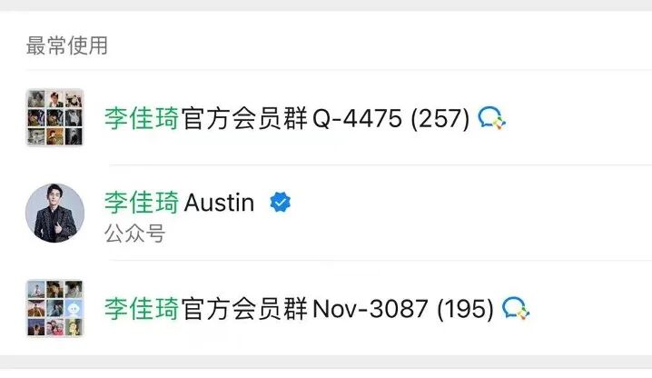 在公域平臺上,李佳琦充分利用“李佳琦Austin”這個統(tǒng)一的IP,來占領(lǐng)用戶心智。在直播福利群、寵粉群成為越來越多人微信里的標配的當下,用戶如果想加群,就自然會到微信搜一搜中,主動搜索“李佳琦”或者“李佳琦Austin”。
