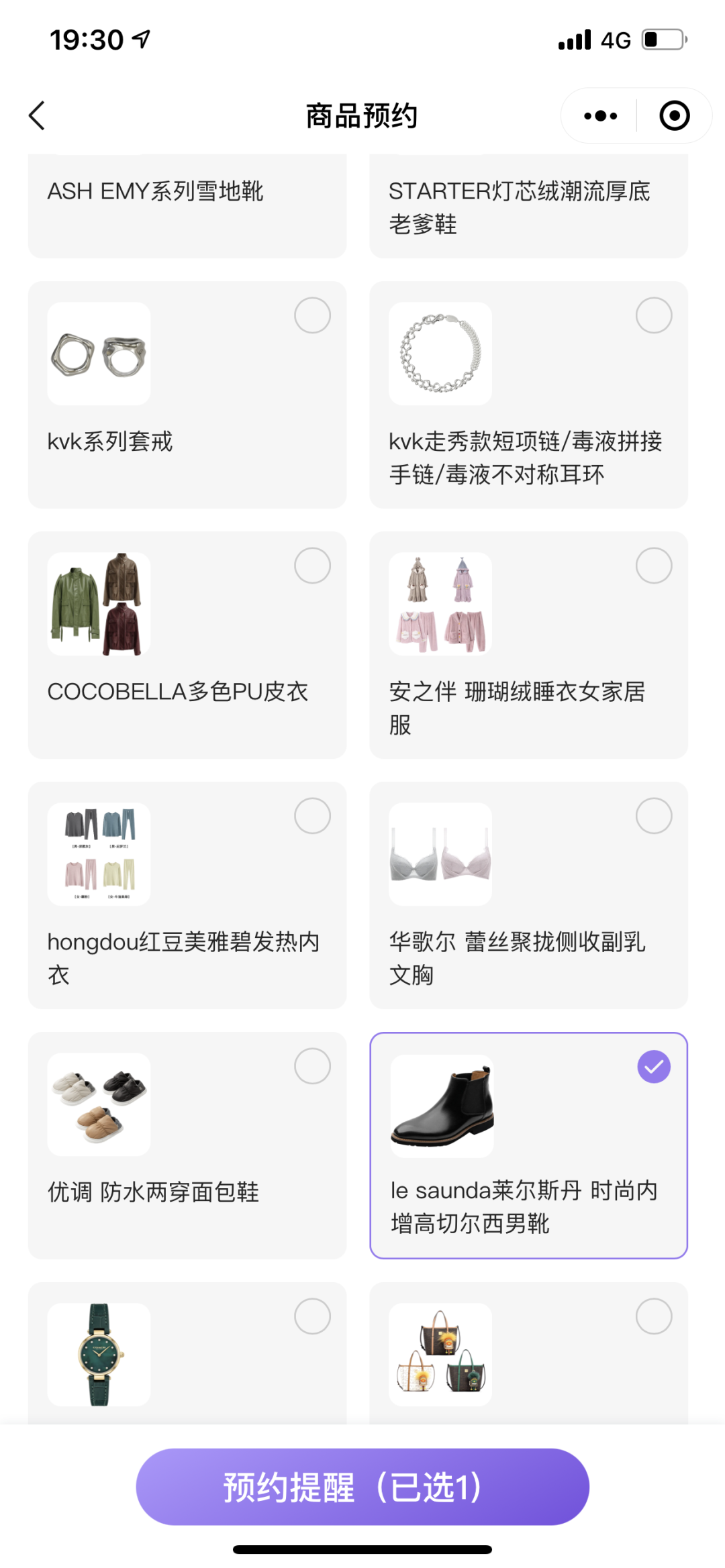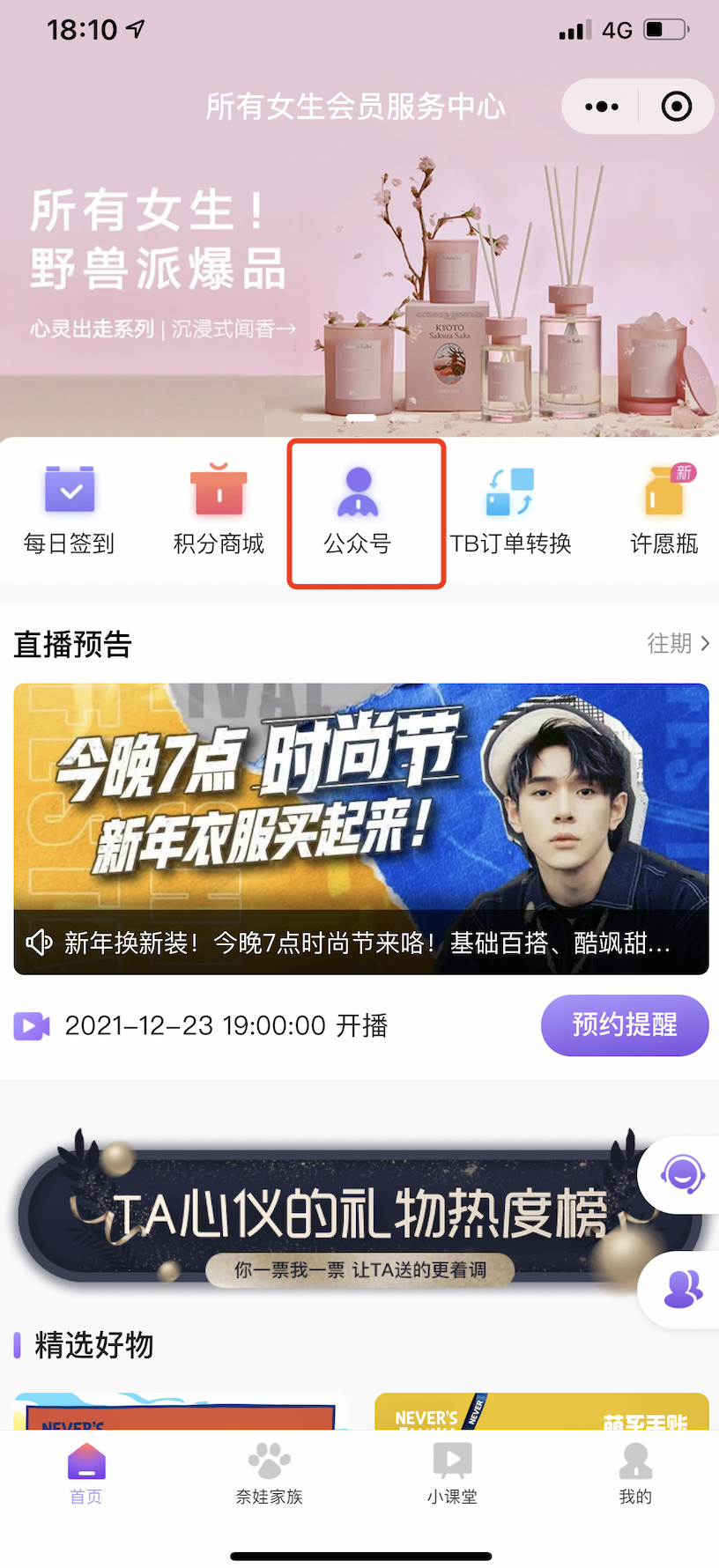 接下來是最牛的點,李佳琦的直播間,除了直播預(yù)約,還能在小程序中,進行單品預(yù)約。如果用戶在整晚的直播中,只對幾樣商品感興趣,可以在商品上架開始售賣時,在公眾號“所有女生會員服務(wù)中心”收到精準的預(yù)約訂單通知。